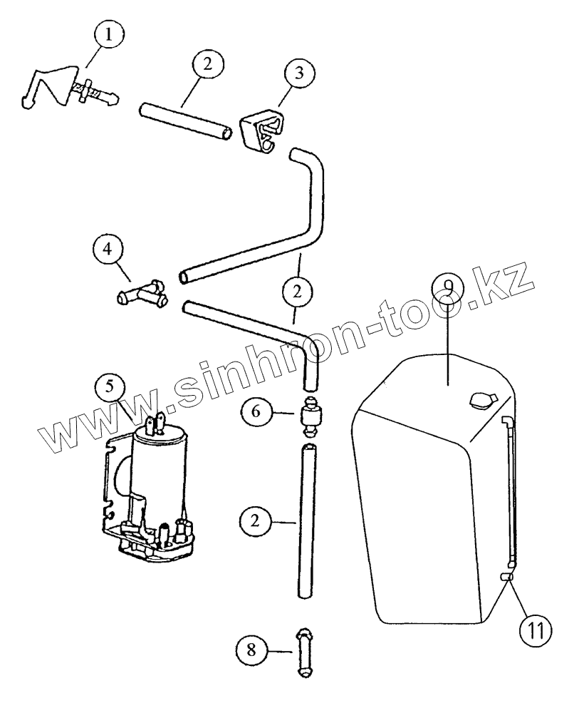 Каталог запасных частей к технике: Нефтекамский автозавод 52999 (надстройка). Детали установки стеклоочистителей