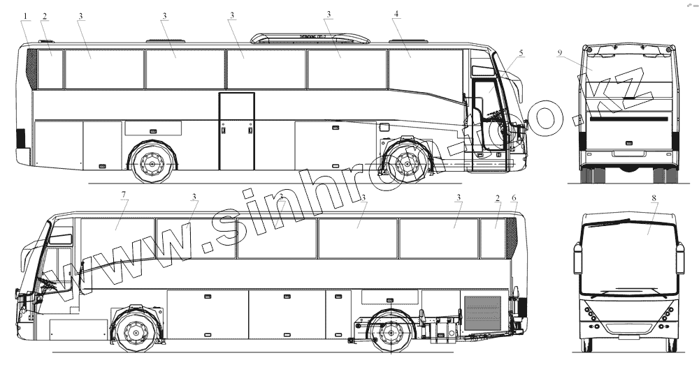 Каталог запасных частей к технике: Нефтекамский автозавод 52999 (надстройка). Установка окон