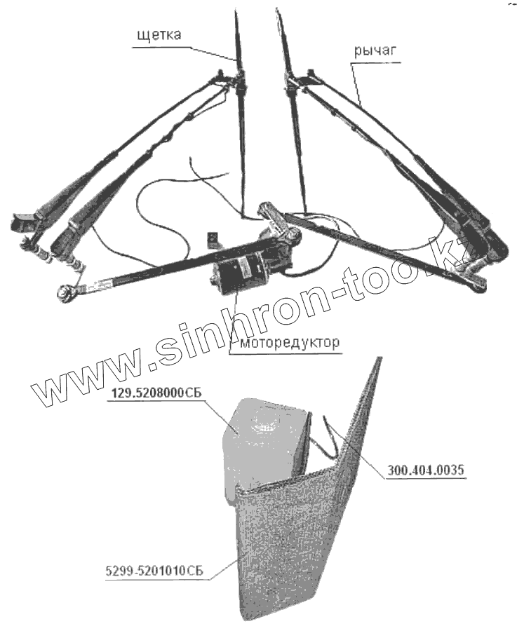 Каталог запасных частей к технике: Нефтекамский автозавод 5299-01 (надстройка). Стеклоочистители и стеклоомыватель