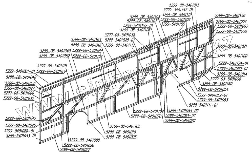 Каталог запасных частей к технике: Нефтекамский автозавод 5299-08 (надстройка). Каркас левой боковины