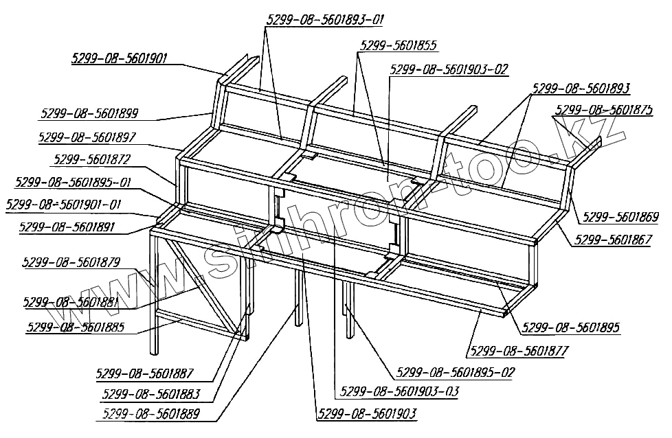 Каталог запасных частей к технике: Нефтекамский автозавод 5299-08 (надстройка). Каркас мотоотсека
