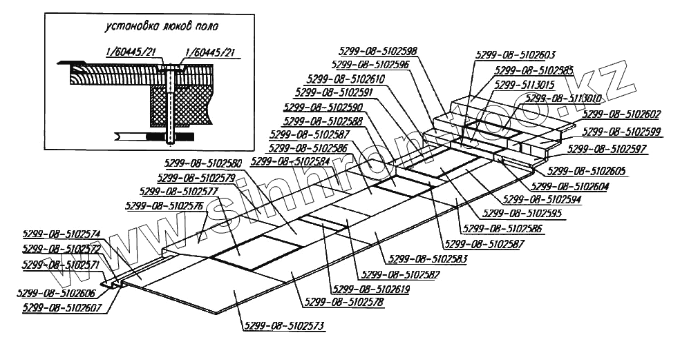 Каталог запасных частей к технике: Нефтекамский автозавод 5299-08 (надстройка). Твердый настил пола