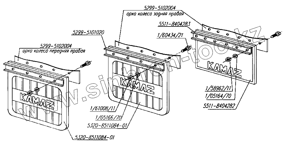 Каталог запасных частей к технике: Нефтекамский автозавод 5299-08 (надстройка). Установка брызговиков