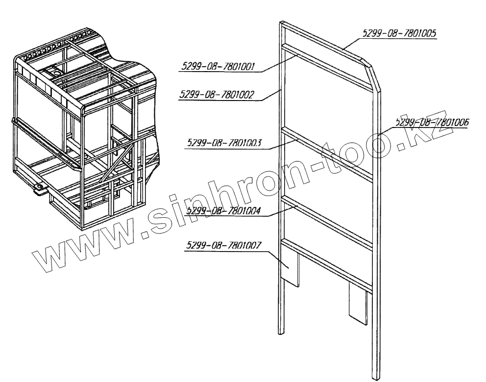 Каталог запасных частей к технике: Нефтекамский автозавод 5299-08 (надстройка). Установка перегородки