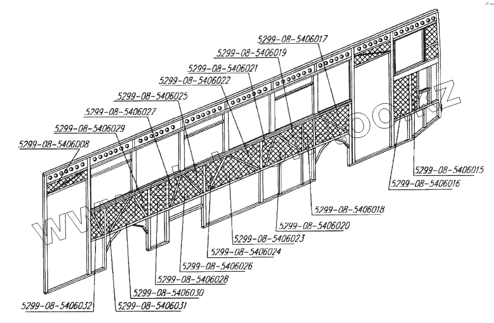 Каталог запасных частей к технике: Нефтекамский автозавод 5299-08 (надстройка). Установка термоизоляции правой боковины