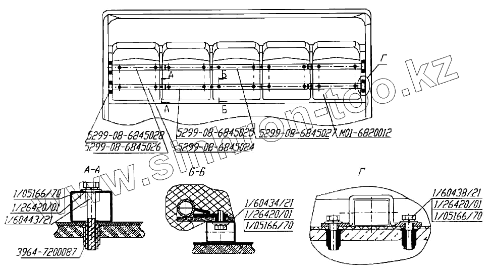 Каталог запасных частей к технике: Нефтекамский автозавод 5299-08 (надстройка). Установка заднего ряда сидений