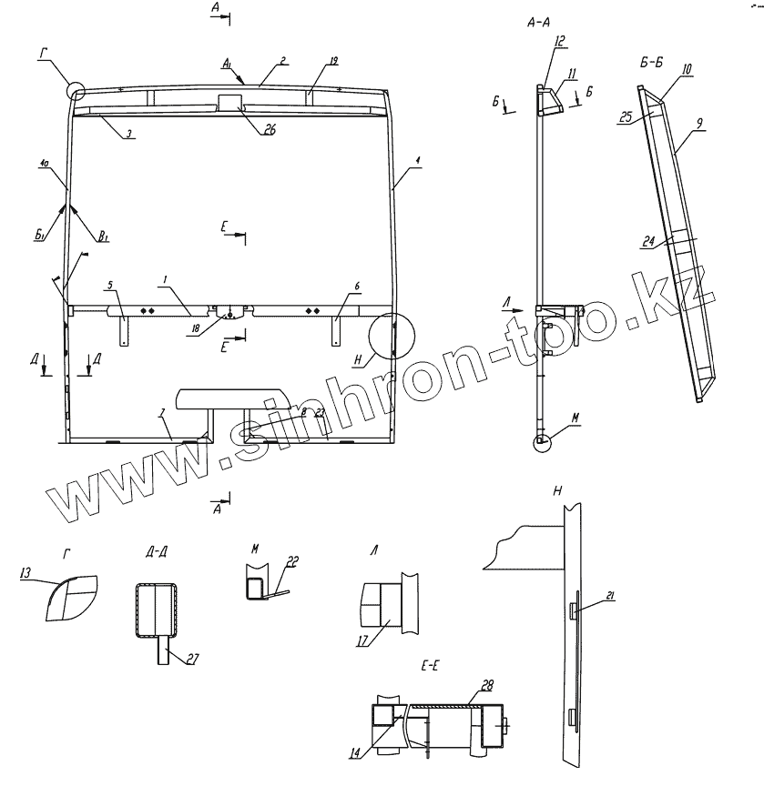 Каталог запасных частей к технике: Нефтекамский автозавод 5299-10-(11) (надстройка). Каркас передка