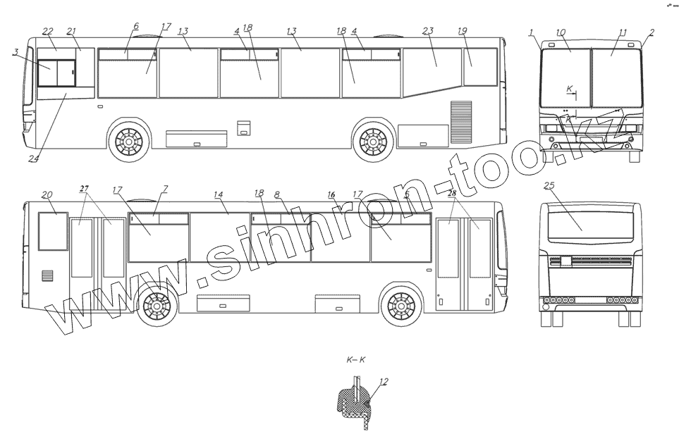 Каталог запасных частей к технике: Нефтекамский автозавод 5299-10-(11) (надстройка). Установка окон