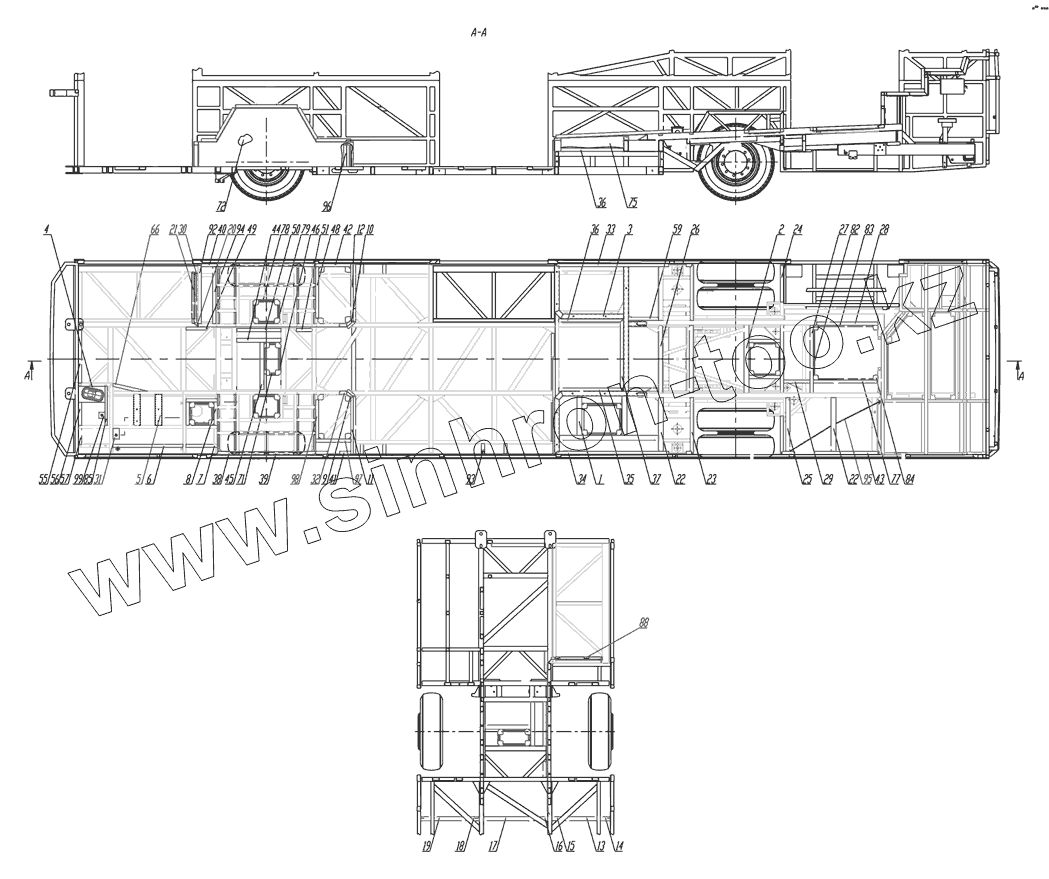 Каталог запасных частей к технике: Нефтекамский автозавод 5299-30-22 (надстройка). Каркас пола в сборе
