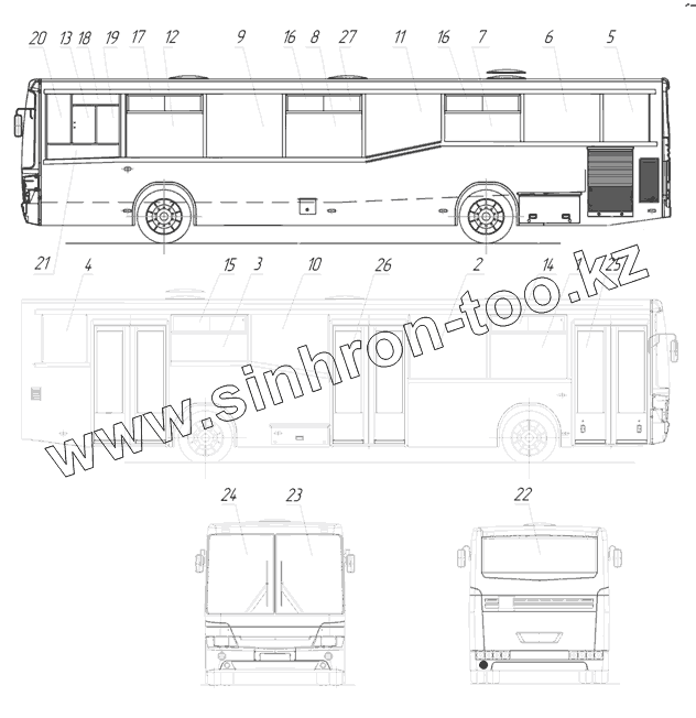 Каталог запасных частей к технике: Нефтекамский автозавод 5299-30-22 (надстройка). Установка окон