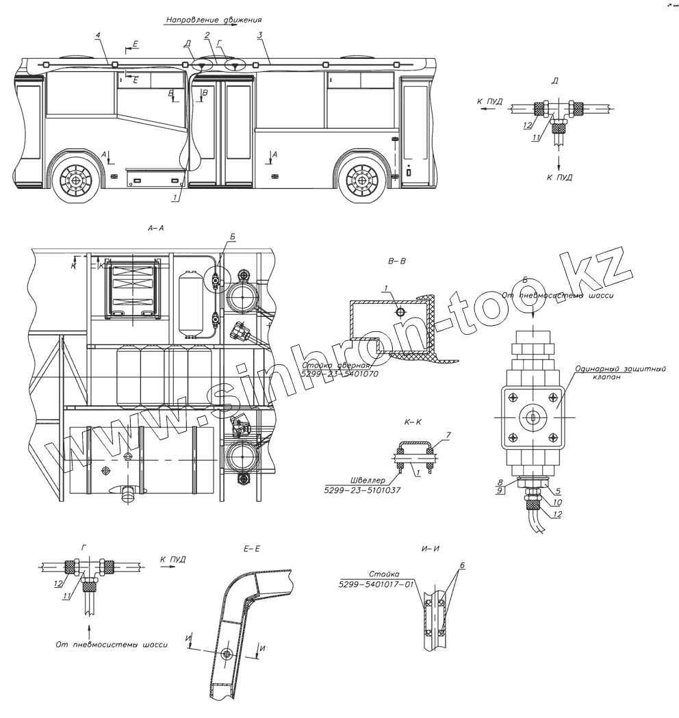 Каталог запасных частей к технике: Нефтекамский автозавод 5299-30-22 (надстройка). Установка пневмосистемы