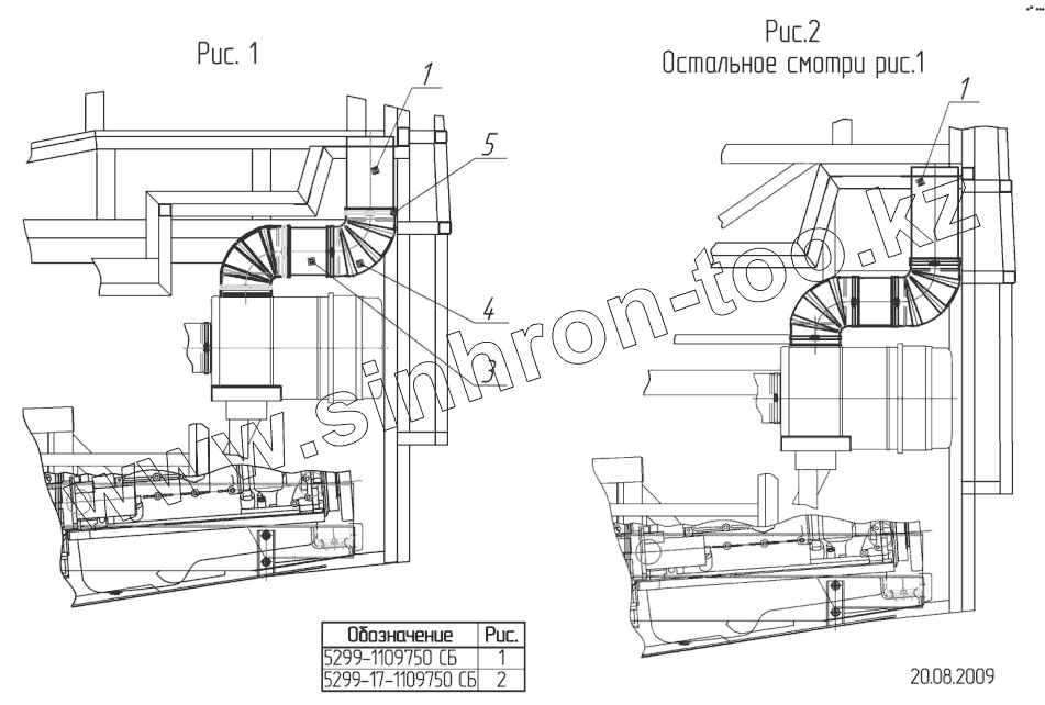 Каталог запасных частей к технике: Нефтекамский автозавод 5299-30-31 (надстройка). 5299-1109750 – Установка питания воздухом