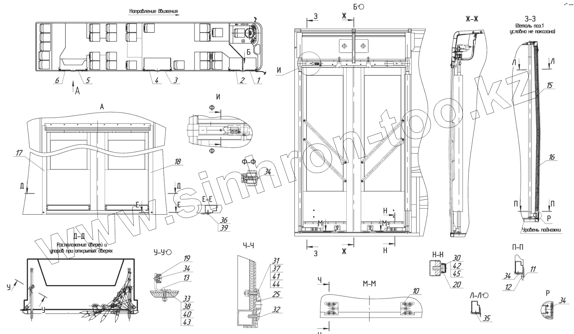 Каталог запасных частей к технике: Нефтекамский автозавод 5299-30-31 (надстройка). 5299-5000123 - Установка дверей
