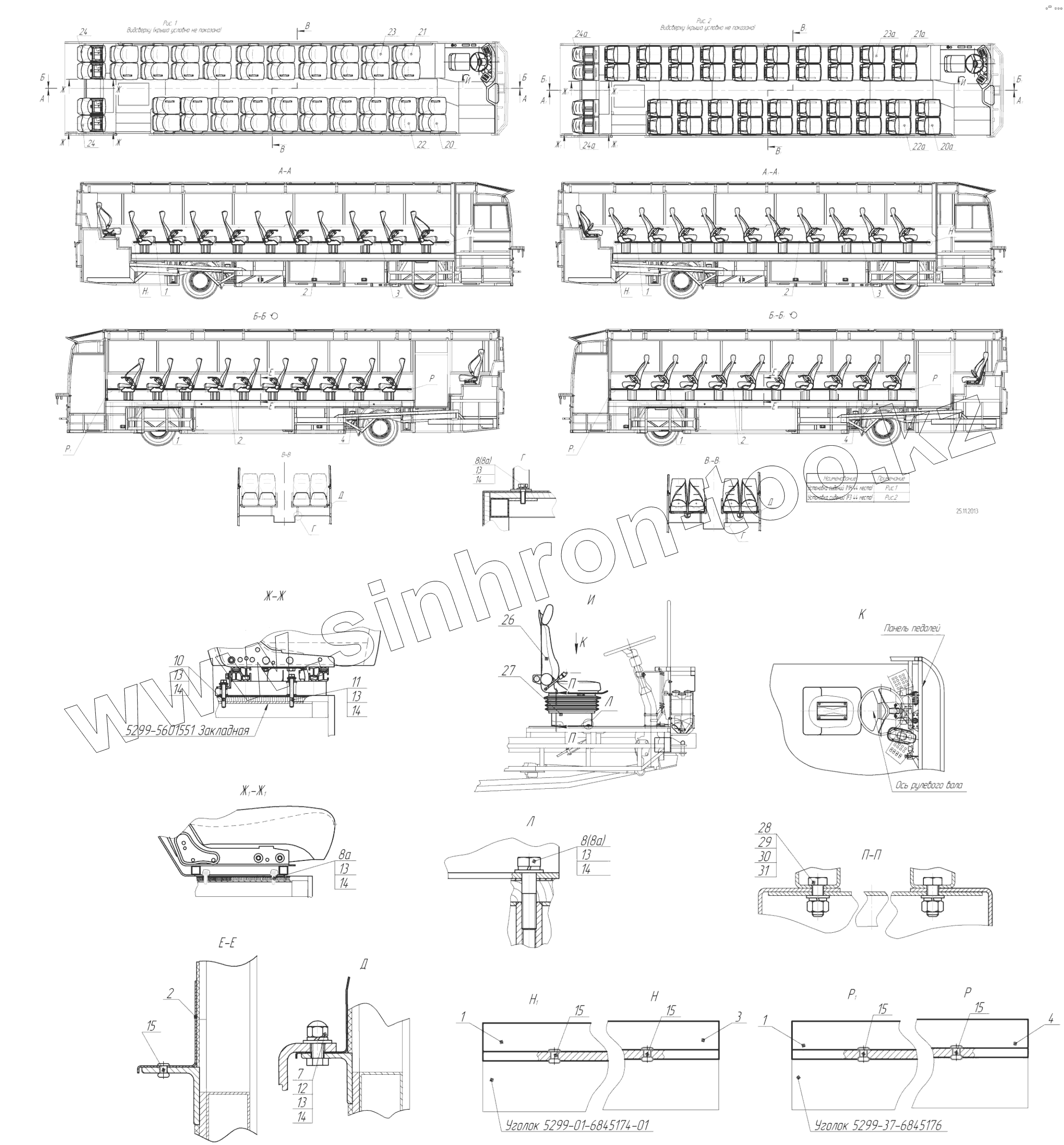 Каталог запасных частей к технике: Нефтекамский автозавод 5299-37-42 (надстройка). 5299-372-5000070 – Установка сидений