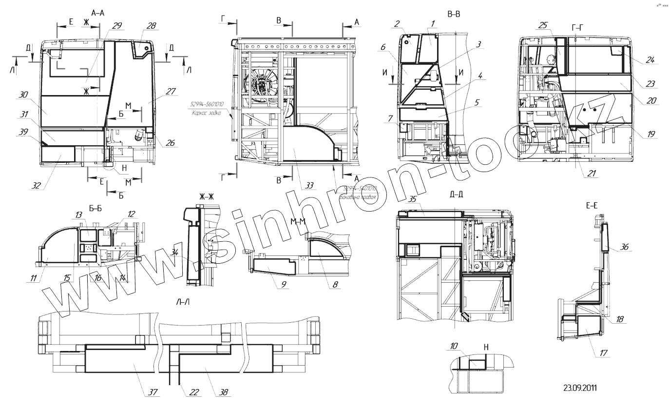 Каталог запасных частей к технике: Нефтекамский автозавод 5299-40-52 (надстройка). 52994-5601710 – Установка панелей мотоотсека