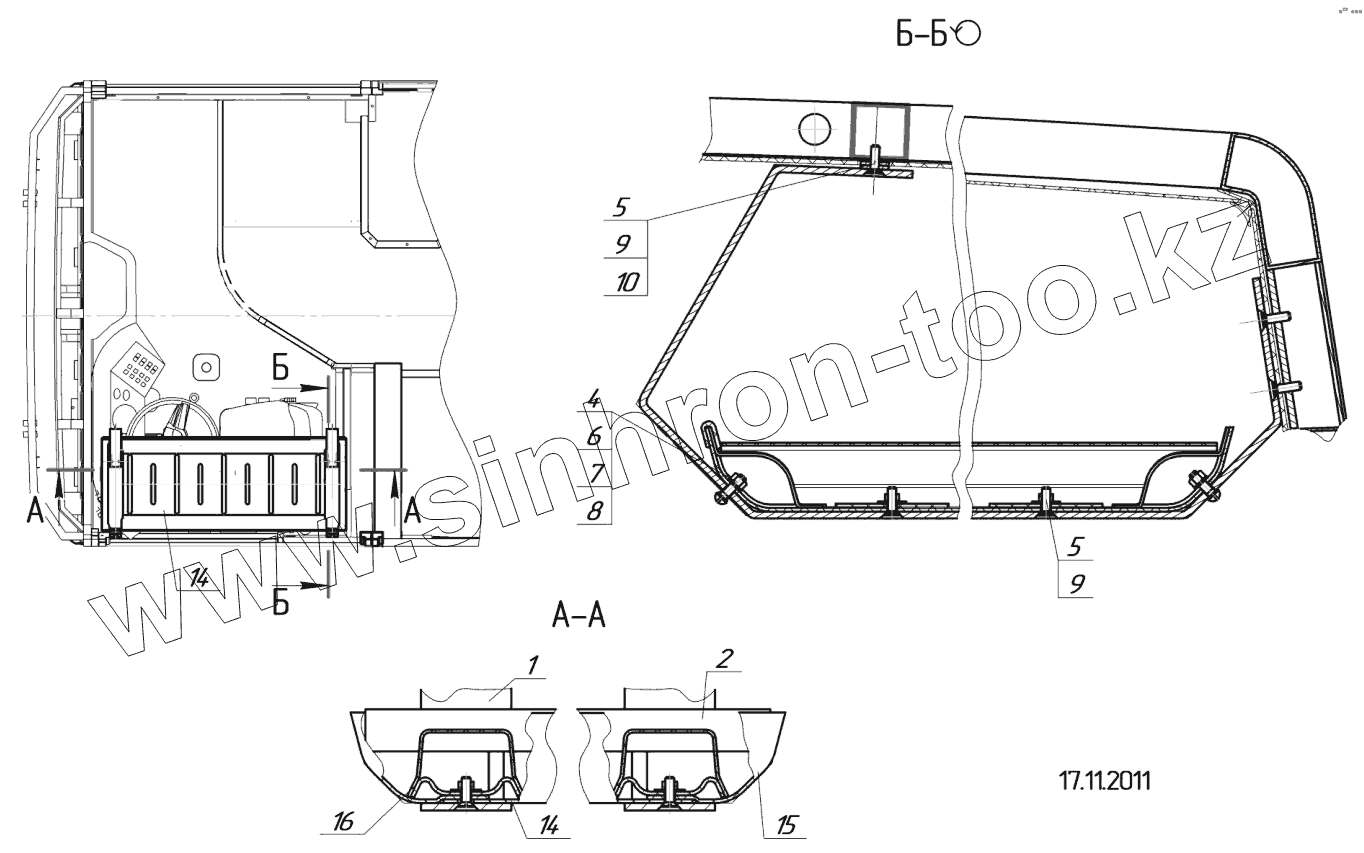 Каталог запасных частей к технике: Нефтекамский автозавод 5299-40-52 (надстройка). 52994-8001005 – Установка полки водителя