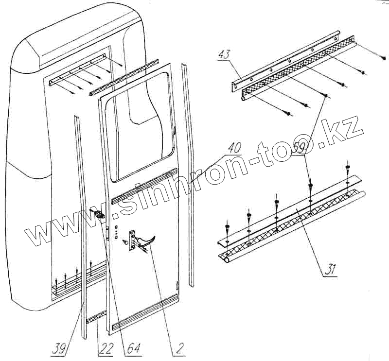Каталог запасных частей к технике: Нефтекамский автозавод НефАЗ-4208, НефАЗ-42111. Установка задней двери