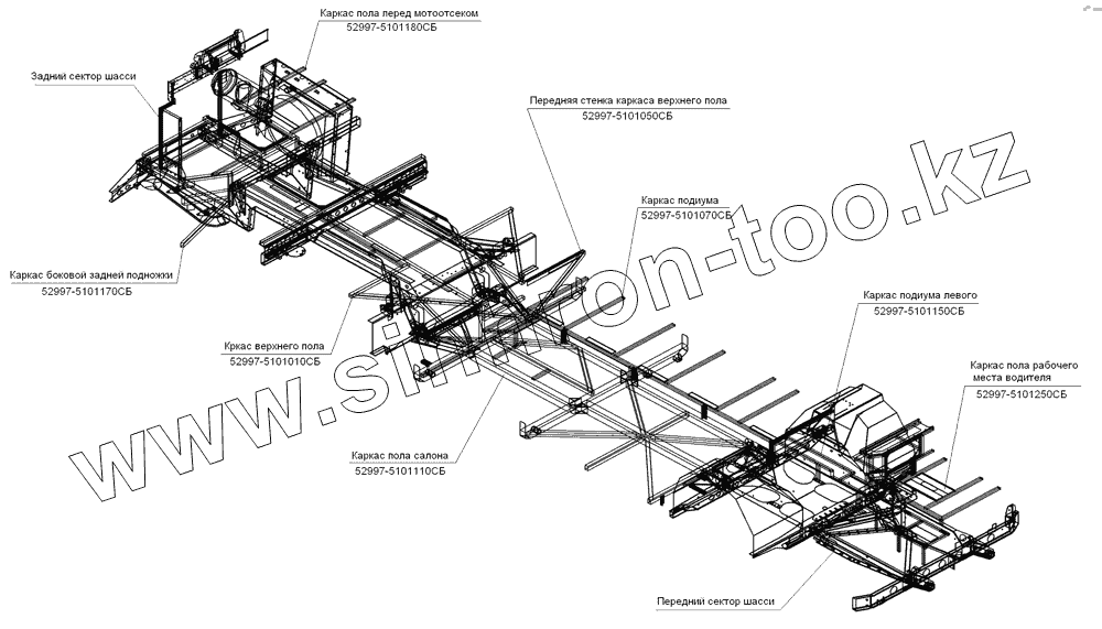 Каталог запасных частей к технике: Нефтекамский автозавод НефАЗ-52997. Каркас основания в сборе