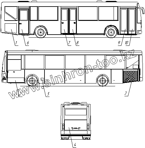 Каталог запасных частей к технике: Нефтекамский автозавод НефАЗ-52997. Общий вид расположения люков и дверей