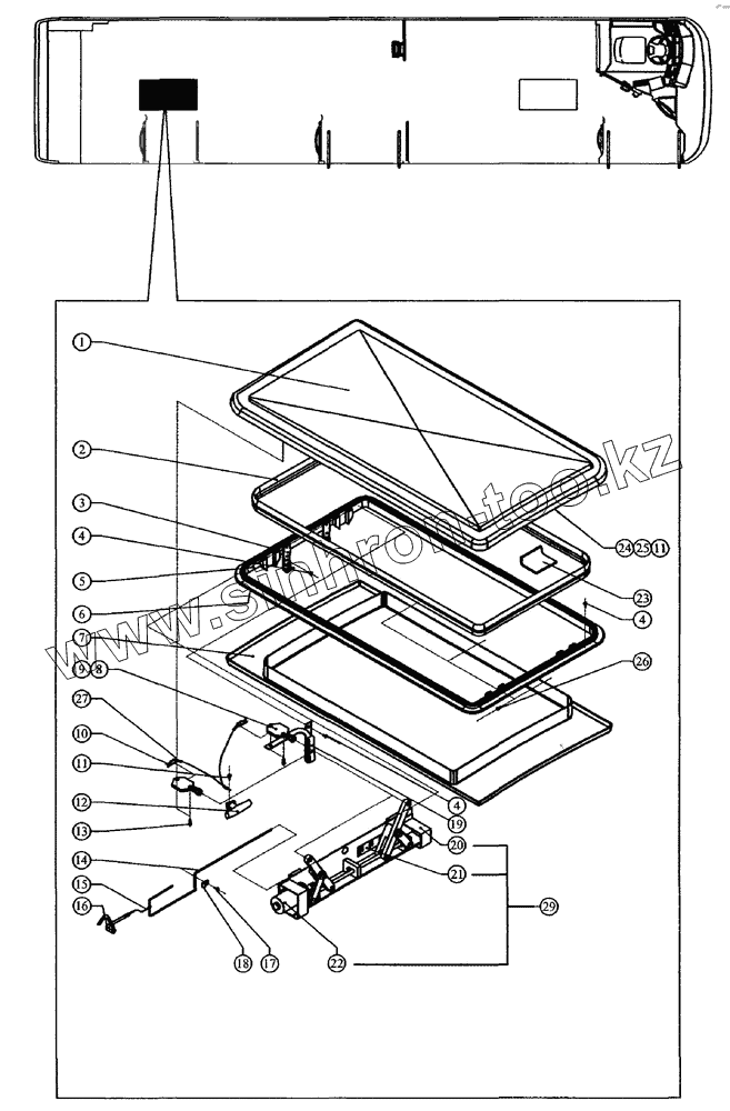 Каталог запасных частей к технике: Нефтекамский автозавод НефАЗ-52997. Установка аварийно-вентиляционного люка заднего
