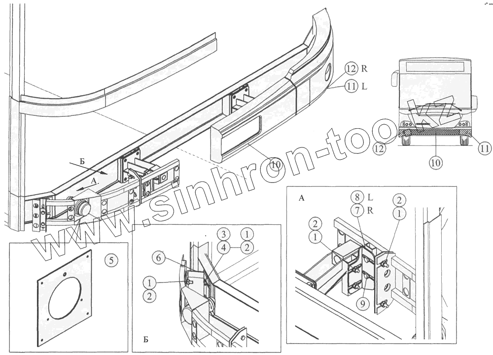 Каталог запасных частей к технике: Нефтекамский автозавод НефАЗ-52997. Установка переднего бампера