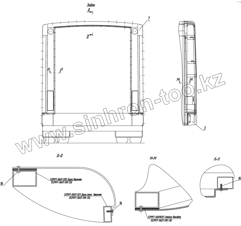 Каталог запасных частей к технике: Нефтекамский автозавод НефАЗ-52997. Установка пластиковых панелей задка