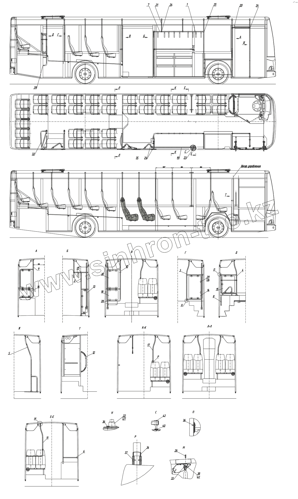 Каталог запасных частей к технике: Нефтекамский автозавод НефАЗ-52997. Установка поручней