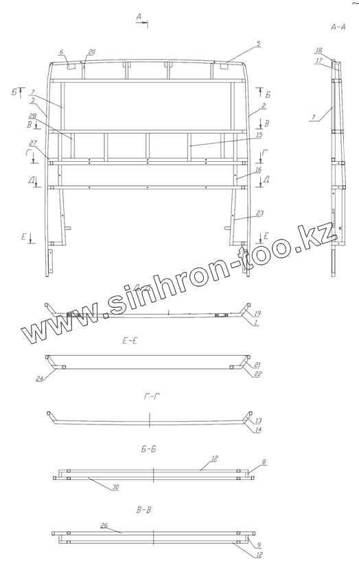 Каталог запасных частей к технике: Нефтекамский автозавод НефАЗ-5299-10-08. Каркас задка 5299-08-5601010СБ