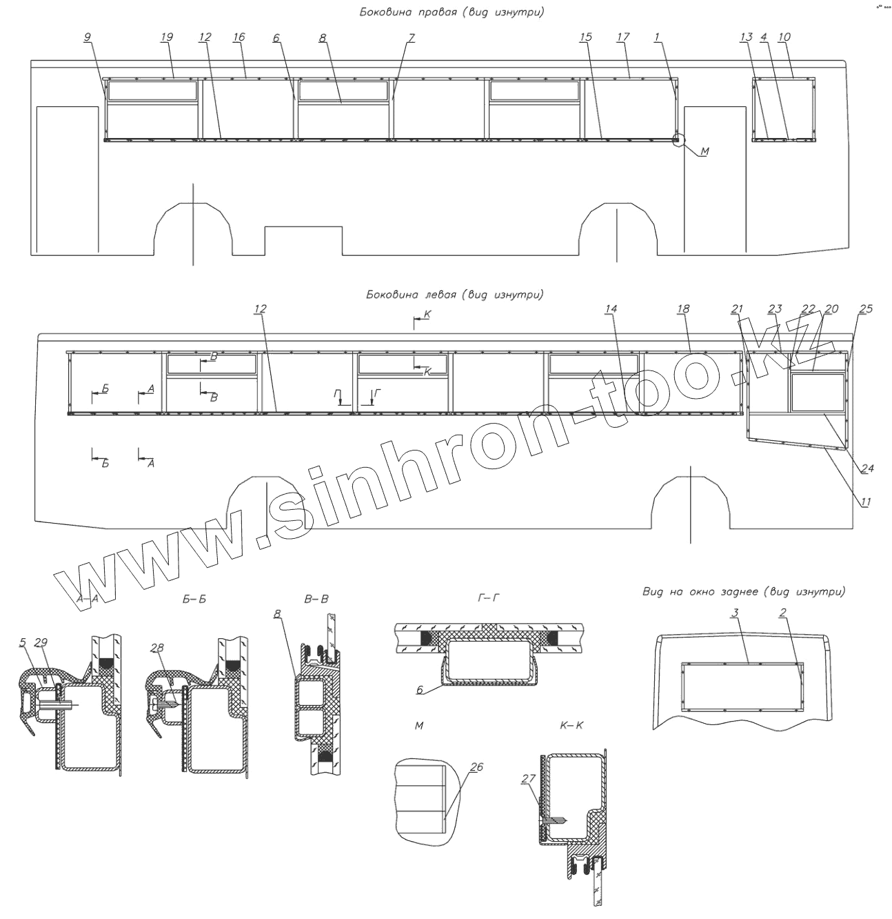 Каталог запасных частей к технике: Нефтекамский автозавод НефАЗ-5299-10-08. Окантовка окон