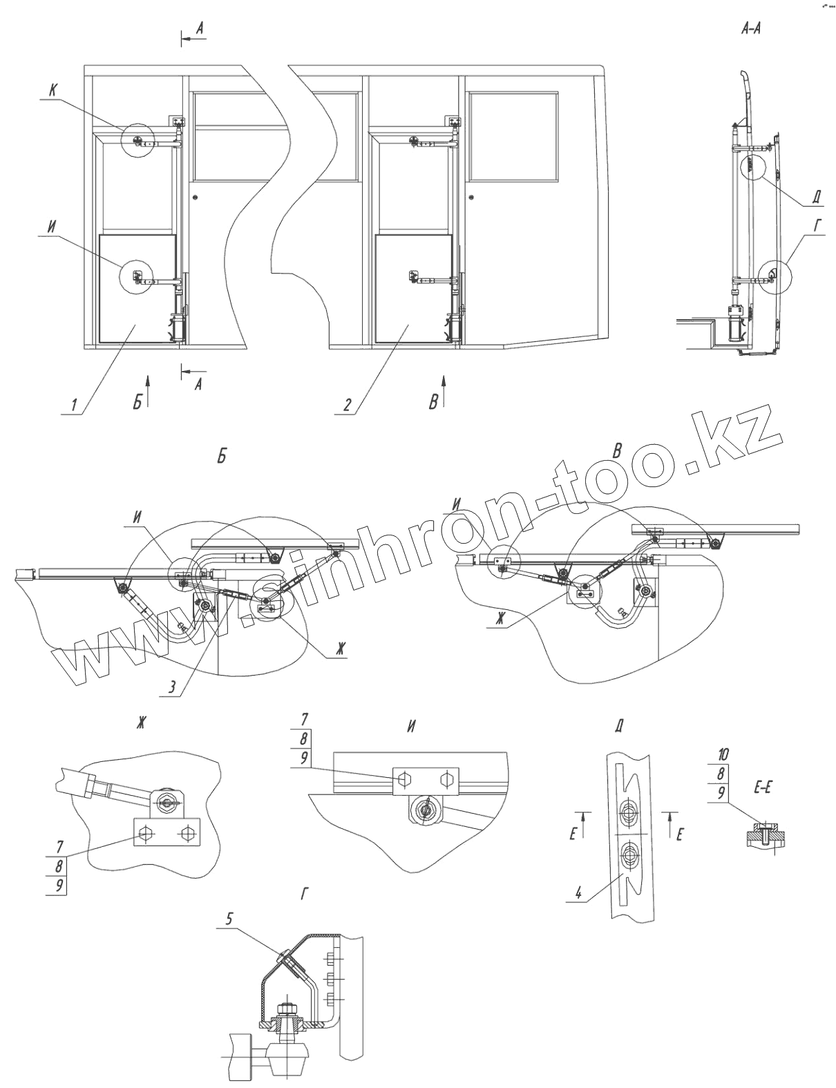 Каталог запасных частей к технике: Нефтекамский автозавод НефАЗ-5299-10-08. Установка дверей