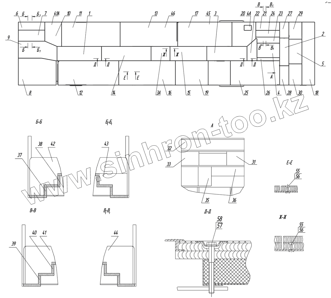 Каталог запасных частей к технике: Нефтекамский автозавод НефАЗ-5299-10-08. Установка панелей и люков пола