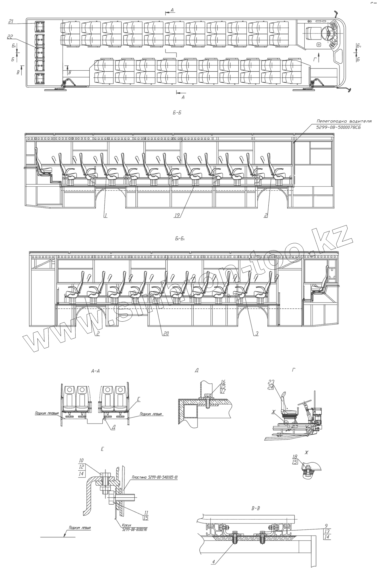 Каталог запасных частей к технике: Нефтекамский автозавод НефАЗ-5299-10-08. Установка сидений