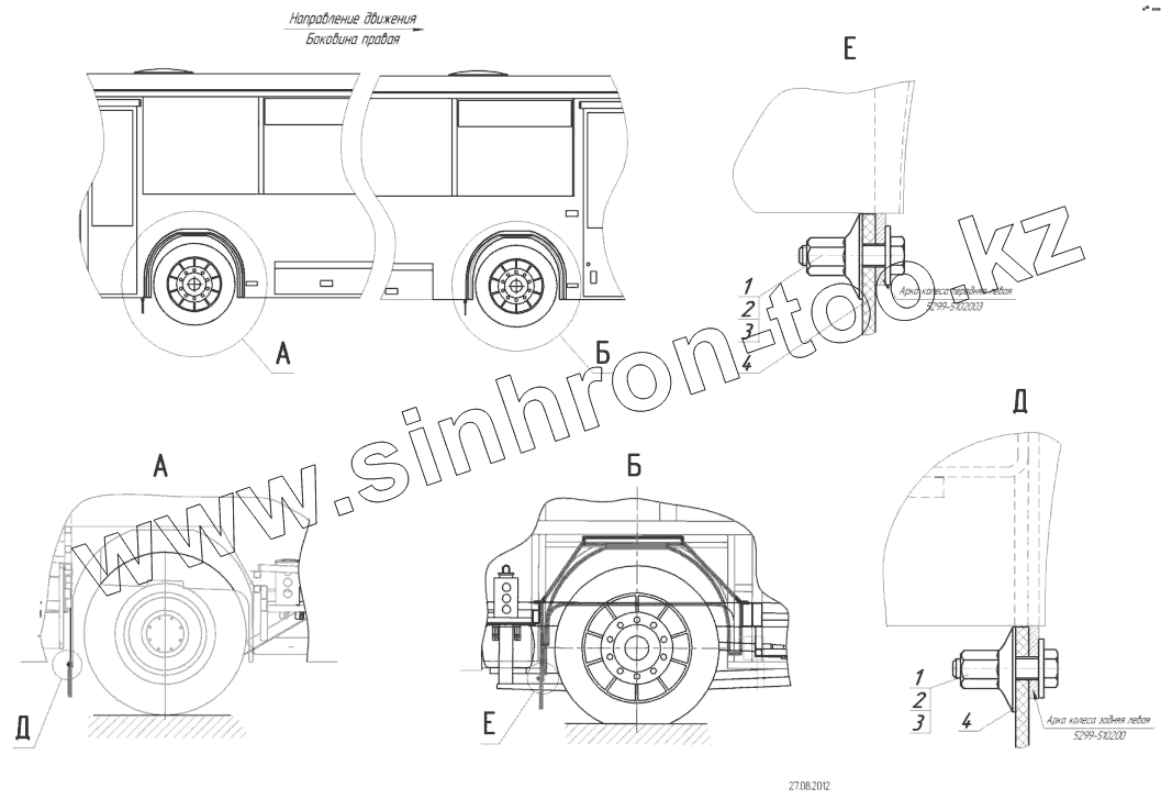 Каталог запасных частей к технике: Нефтекамский автозавод НефАЗ–5299-10-32. 5299-5100100 – Установка брызговиков