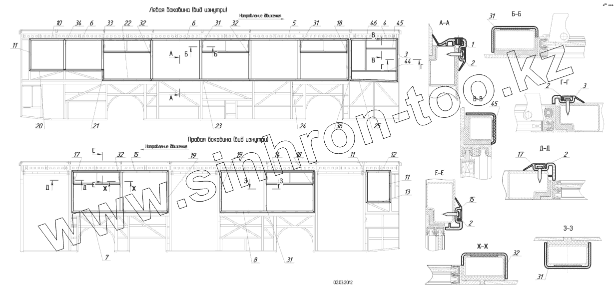 Каталог запасных частей к технике: Нефтекамский автозавод НефАЗ–5299-10-32. 5299-5403100 – Окантовка окон