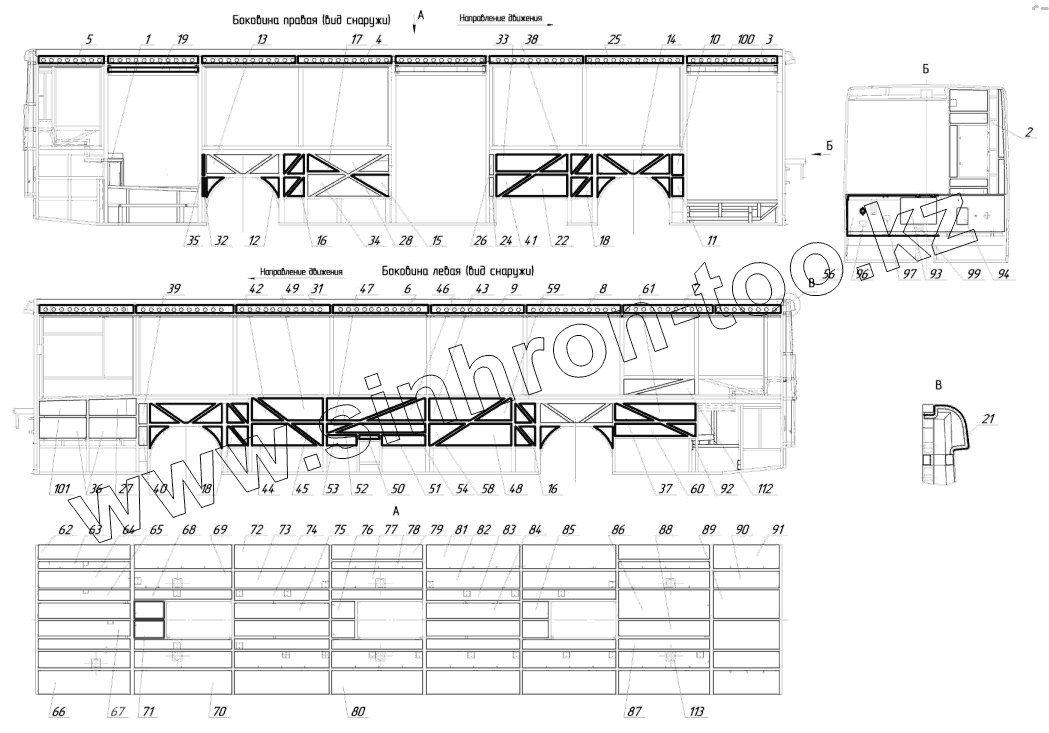 Каталог запасных частей к технике: Нефтекамский автозавод НефАЗ–5299-10-32. 5299-5406010 – Установка термоизоляции