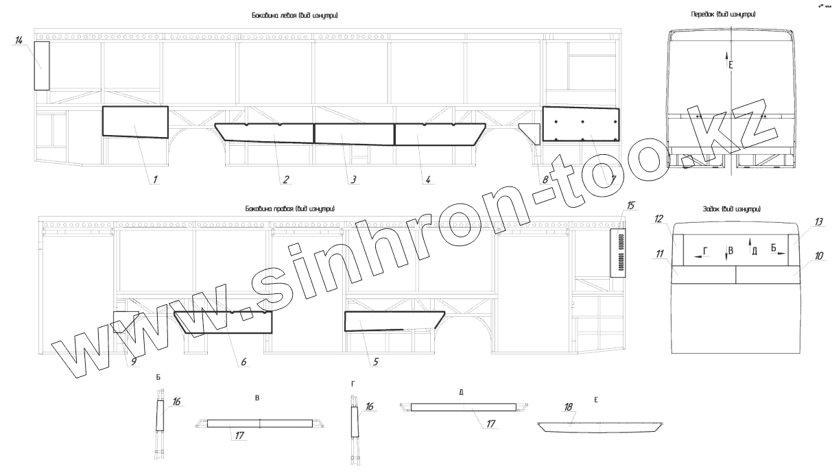 Каталог запасных частей к технике: Нефтекамский автозавод НефАЗ–5299-10-32. 5299-5701640 – Установка панелей облицовки