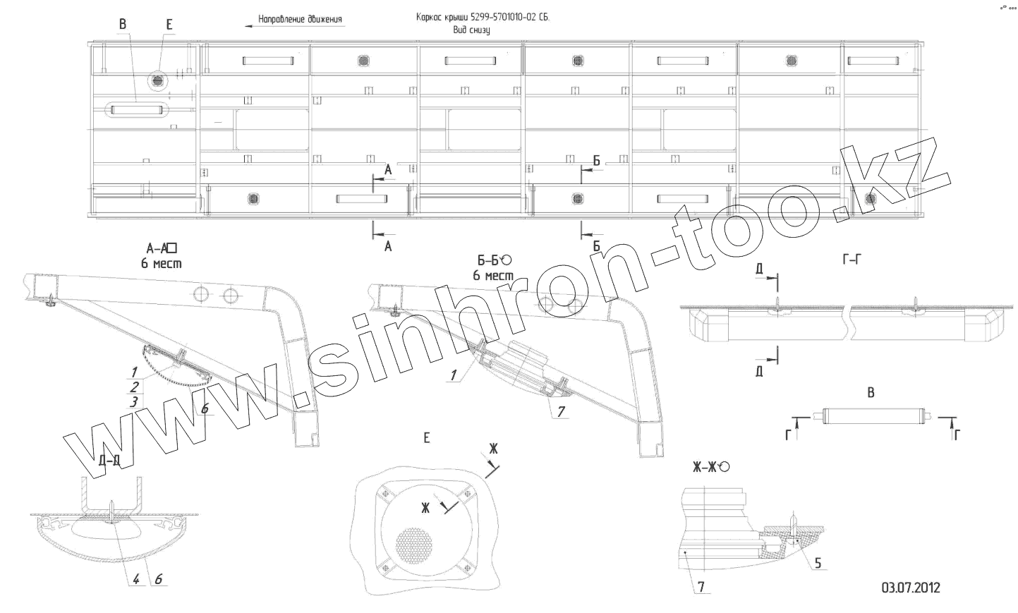 5299-102-5700500-01 – Крыша в сборе (металлическая облицовка без кондиционера) (см. 5299-102-5700500-01СБ)
