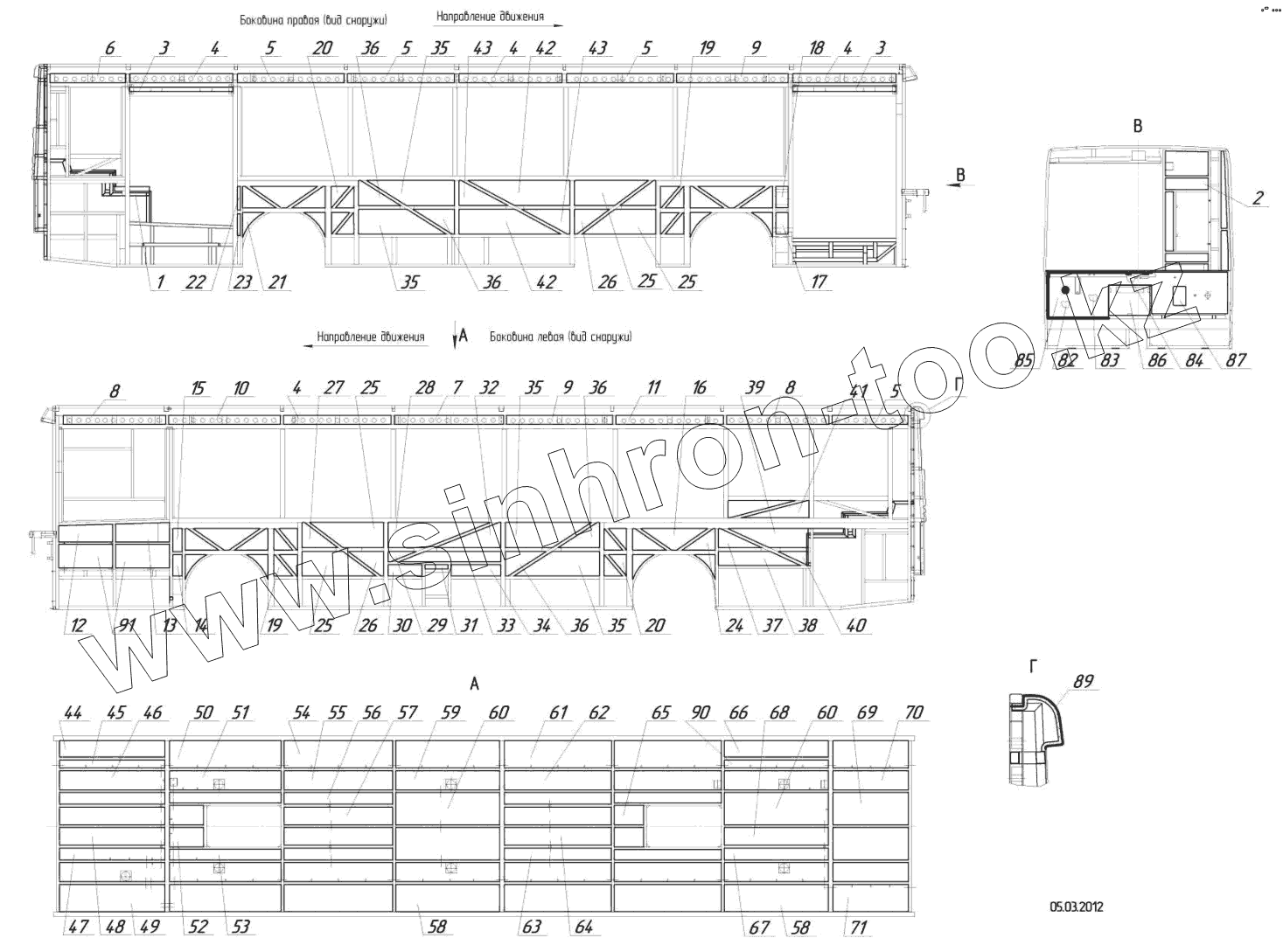 Каталог запасных частей к технике: Нефтекамский автозавод НефАЗ–5299-11-32. 5299-01-5406010 – Установка термоизоляции