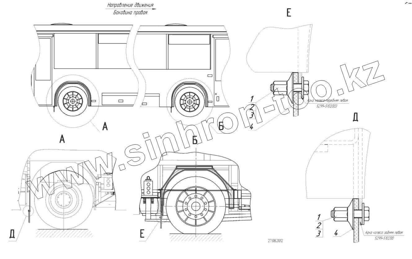 Каталог запасных частей к технике: Нефтекамский автозавод НефАЗ–5299-11-32. 5299-5100100 – Установка брызговиков
