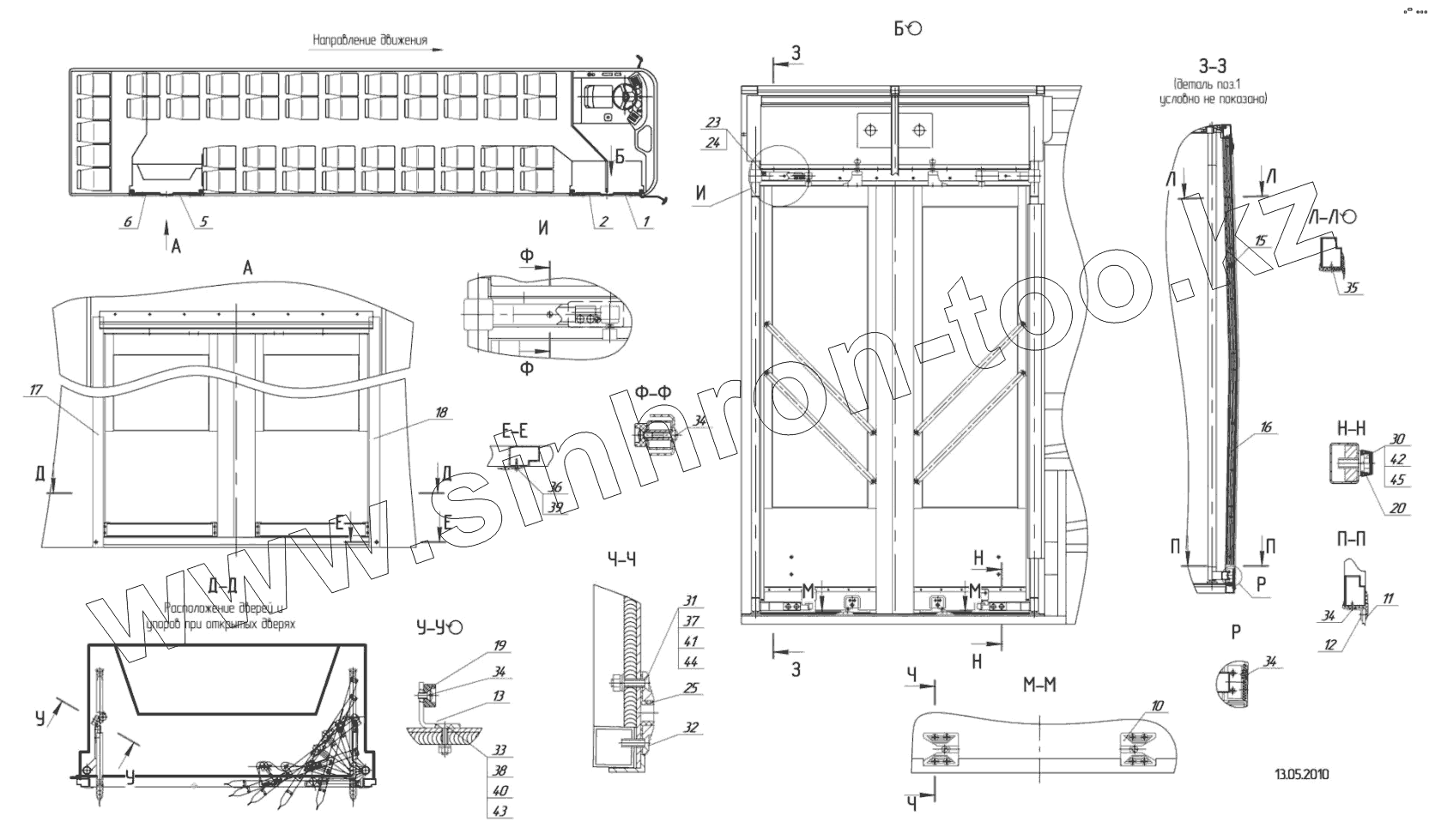 Каталог запасных частей к технике: Нефтекамский автозавод НефАЗ–5299-11-33. 5299-01-5000123 – Установка дверей