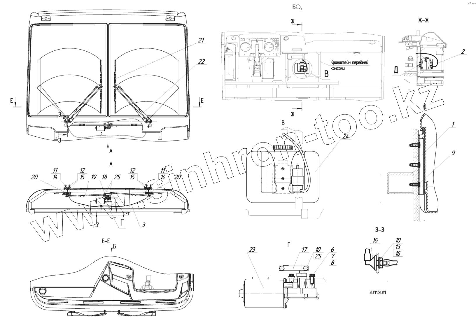Каталог запасных частей к технике: Нефтекамский автозавод НефАЗ–5299-11-33. 5299-5201001 – Установка стеклоочистителей