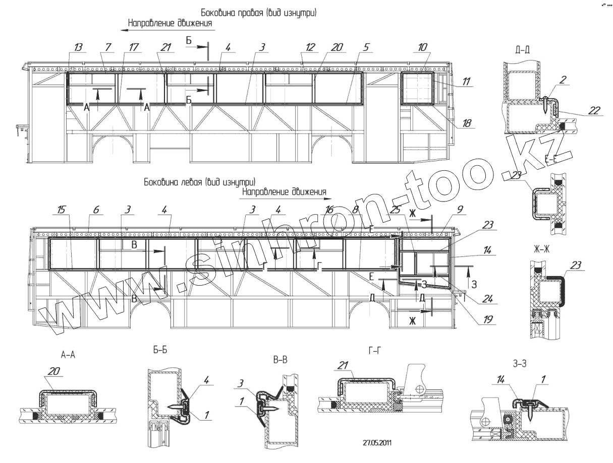 Каталог запасных частей к технике: Нефтекамский автозавод НефАЗ-5299-17-42. 5299-08-5403100 – Окантовка окон