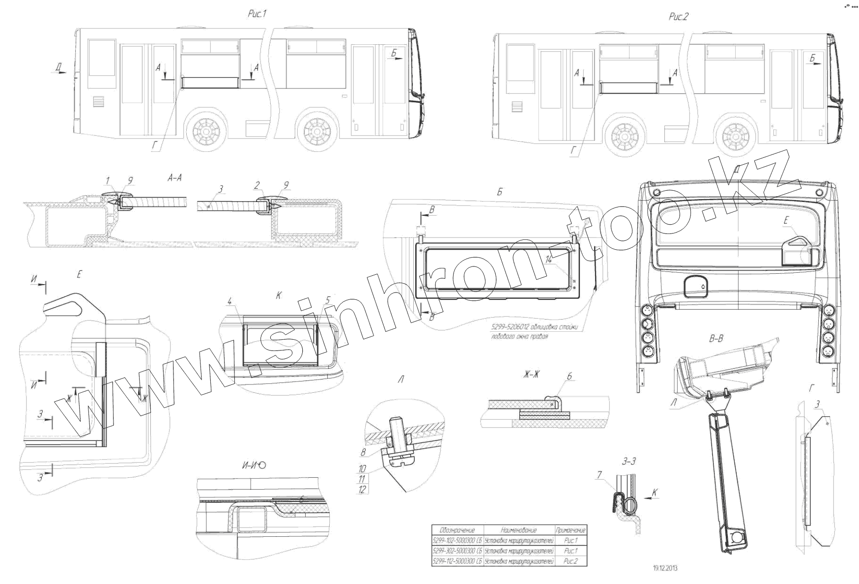 Каталог запасных частей к технике: Нефтекамский автозавод НефАЗ-5299-20-42. 5299-102-5000300 – Установка маршрутоуказателей
