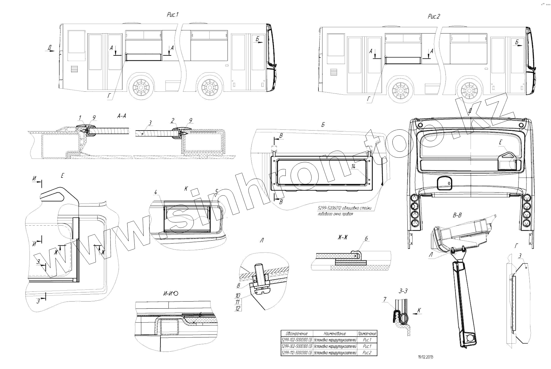 Каталог запасных частей к технике: Нефтекамский автозавод НефАЗ-5299-30-51. 5299-102-5000300 - Установка маршрутоуказателей