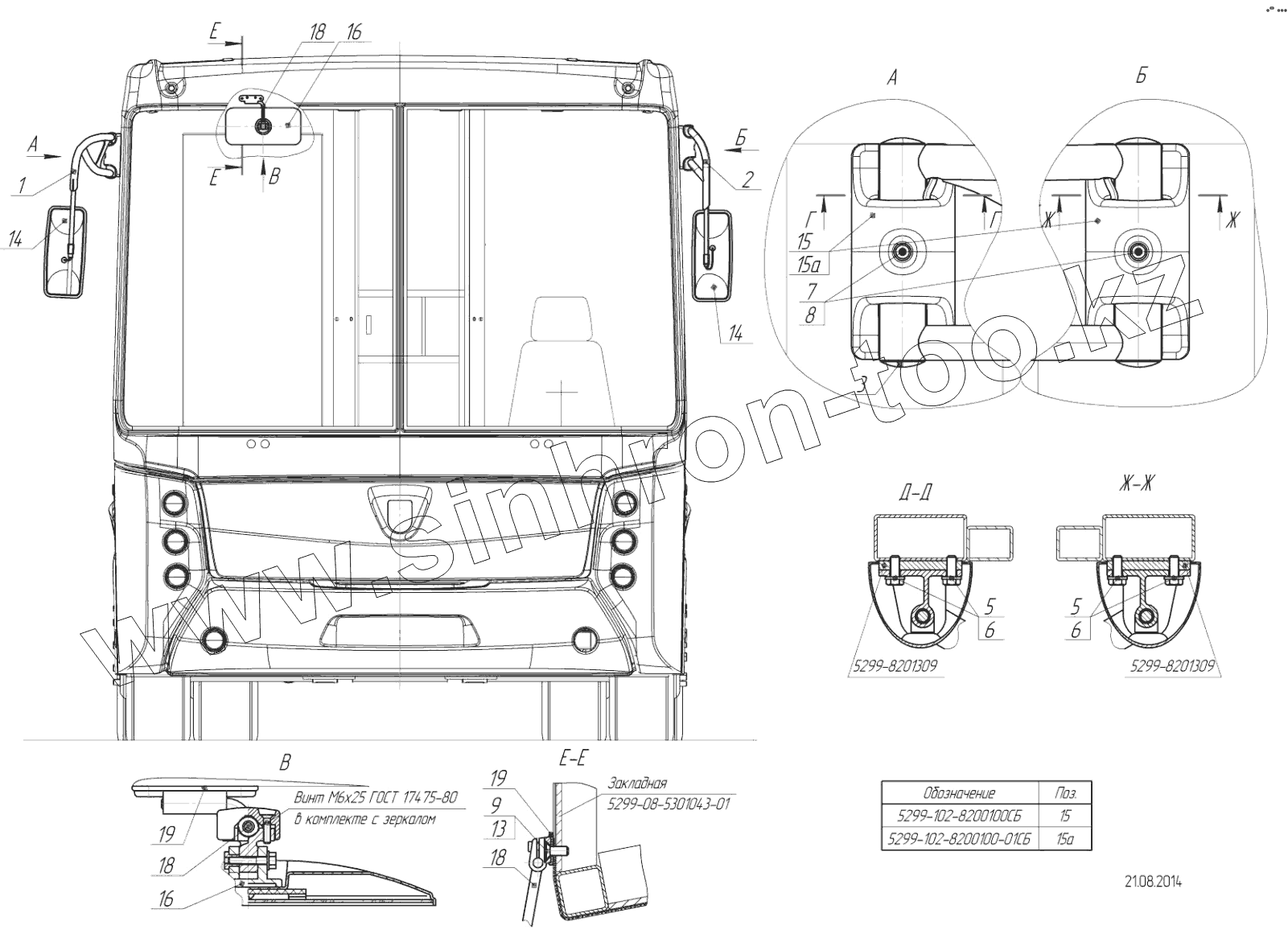 Каталог запасных частей к технике: Нефтекамский автозавод НефАЗ-5299-30-51. 5299-102-8200100 - Установка зеркал