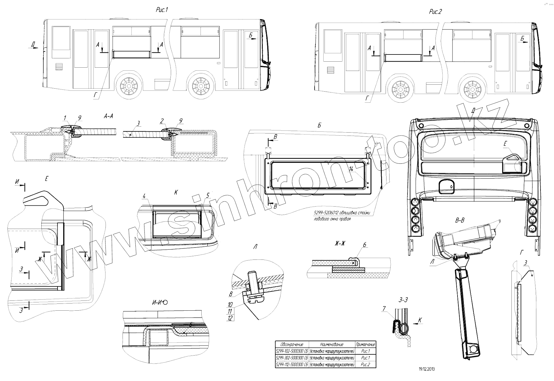 Каталог запасных частей к технике: Нефтекамский автозавод НефАЗ-5299-30-52. 5299-302-5000300 – Установка маршрутоуказателей