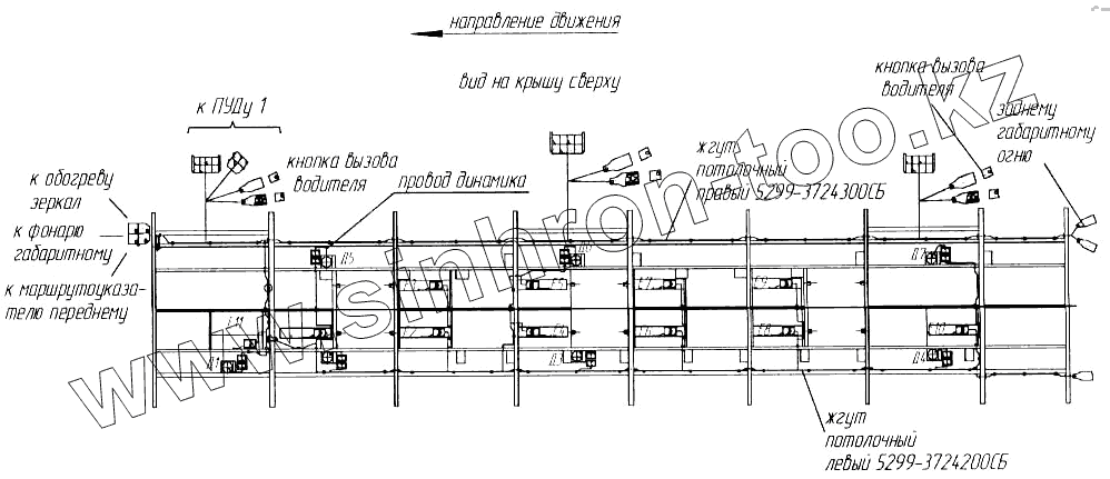 Каталог запасных частей к технике: Нефтекамский автозавод НефАЗ-5299 (надстройка). Электромонтажная схема потолочных жгутов 5299-3724500ЭМ1