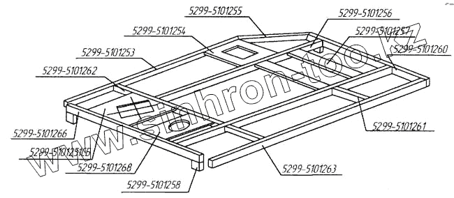 Каталог запасных частей к технике: Нефтекамский автозавод НефАЗ-5299 (надстройка). Каркас пола рабочего места водителя