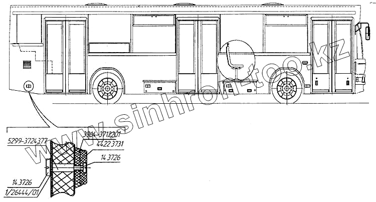 Каталог запасных частей к технике: Нефтекамский автозавод НефАЗ-5299 (надстройка). Установка наружной светотехники (правая)