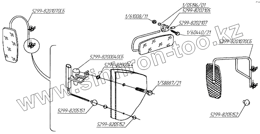 Каталог запасных частей к технике: Нефтекамский автозавод НефАЗ-5299 (надстройка). Зеркала